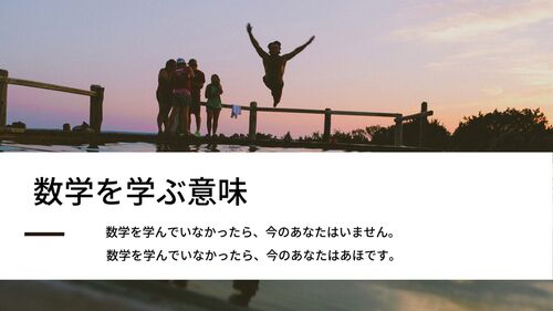 意味のない勉強はありません。将来使わないと言われがちな教科No1数学。しかし、数学を中学校、高校で数学を学ぶことができるからこそ、将来のあなたは幸せになれるのです。数学を学んでいなければ、将来のあなたは生活ができないかもしれません。数学を勉強…